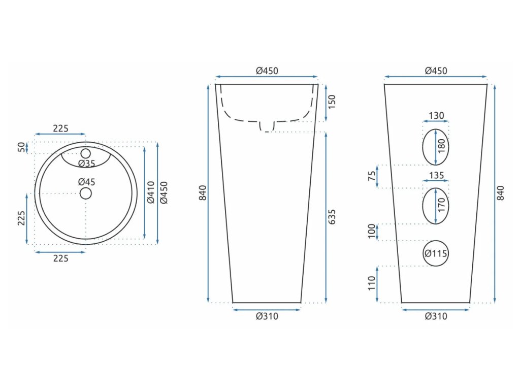 • všetky technické špecifikácie nájdete na výkrese umývadla