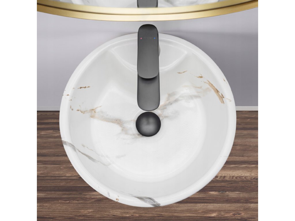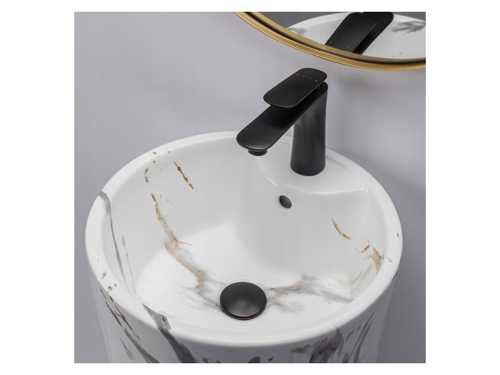 Neuveriteľne moderný dizajn voľne stojaceho umývadla Blanka Marmur. Krásne farebné kombinácie. V kombinácii s čiernymi doplnkami vaša kúpeľňa absolútne zažiari. Vďaka svojim rozmerom a oblému tvaru je ideálnym prvkom do vašej kúpeľne.