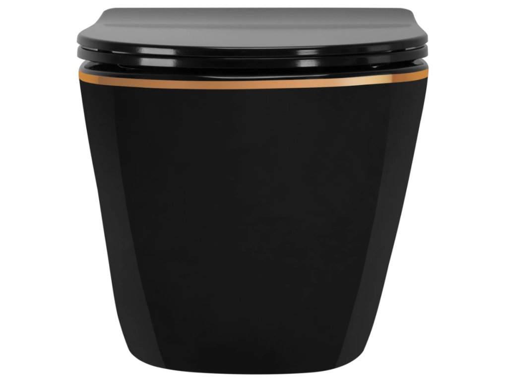Rea Carlo Mini Black WC bez okrajov so sedadlom, zlatý okraj, REA-C8800