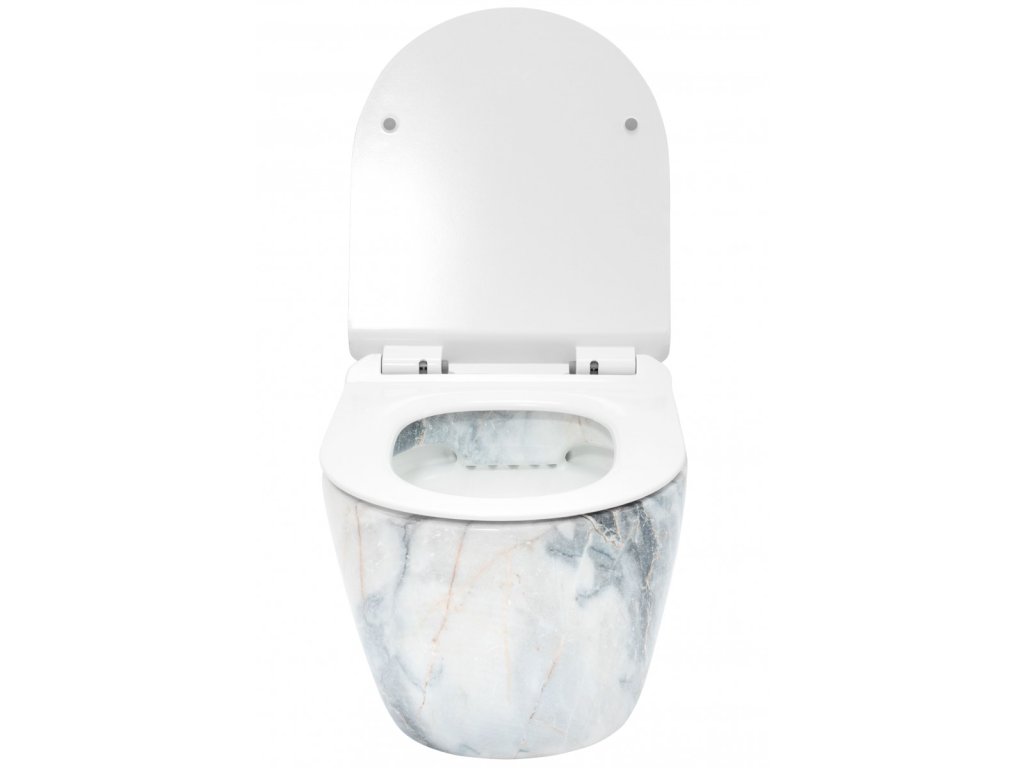 Dizajnová závesná WC misa Carlos v imitácii kameňa. Je vyrobená z kvalitnej sanitárnej keramiky. Vďaka špeciálnemu stupňu výroby je misa odolná a ľahko sa čistí.
