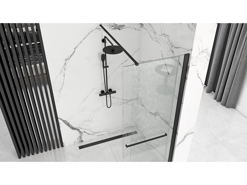 Dizajnový variant sprchového kúta Walk In s čiernymi profilmi, ktorý je jedným z najmodernejších trendov vo vybavení kúpeľne. Ide o otvorený sprchový kút, ktorý pozostáva z jednej steny z bezpečnostného tvrdeného skla, ktoré zabraňuje náhodnému postriekaniu vodou. Povrchová úprava Easy Clean zabraňuje usadzovaniu nečistôt na skle a vzniku tzv. vodných máp. Voda sa odvádza cez odtokový kanálik umiestnený v podlahe. Univerzálne prevedenie pravej alebo ľavej verzie sa vyberá pri inštalácii. Čierne prvky sú štyrikrát potiahnuté laserom s najkvalitnejšou povrchovou úpravou. Vďaka tejto technike sú hliníkové profily chránené proti korózii, poškodeniu a zmene farby. Sprchový kút Cortis dodá vašej kúpeľni moderný a čistý vzhľad, vďaka čomu získa vaša kúpeľňa jedinečný dizajnový nádych podľa najnovších trendov.