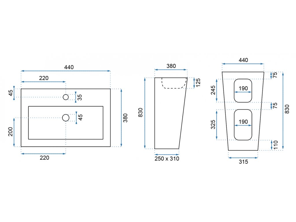 - všetky technické údaje nájdete na výkrese umývadla