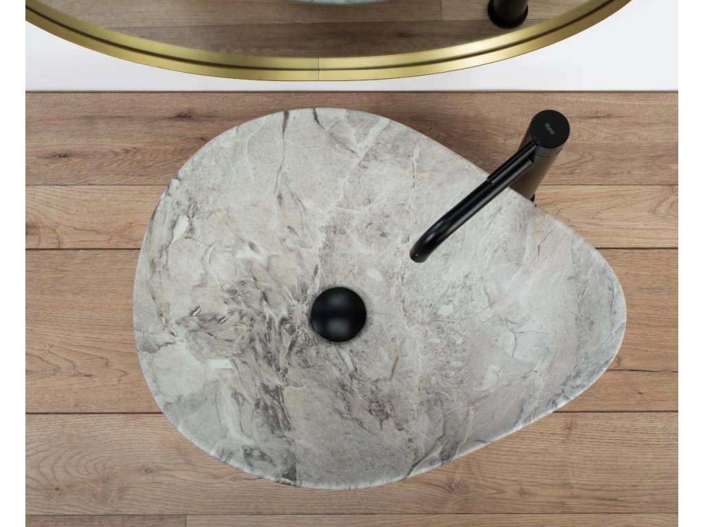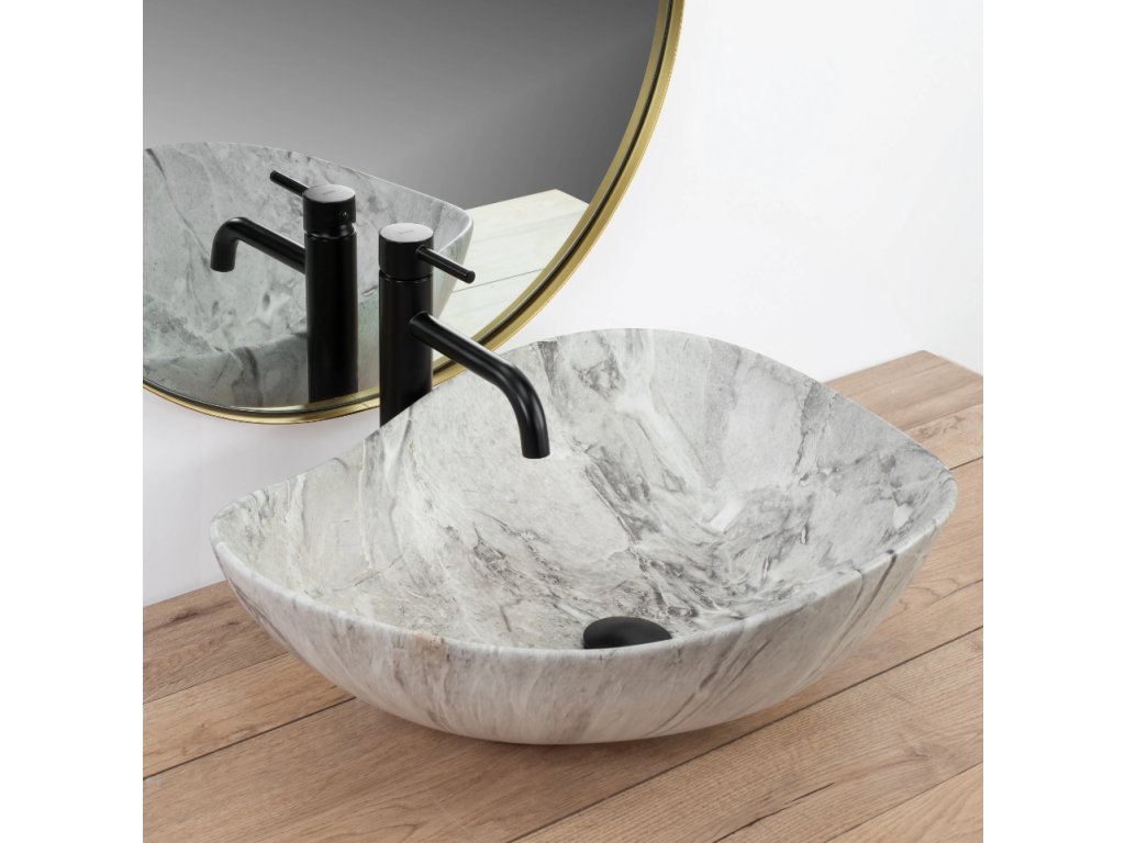 Dizajnové umývadlo na dosku Dora v imitácii kameňa. Nadčasový tvar a rozmery umožňujú dokonalé usporiadanie aj v malých kúpeľniach. Umývadlo je vyrobené z kvalitnej keramiky, ktorá zaručuje bezchybný vzhľad a používanie po dlhé roky. Vďaka špeciálnej povrchovej úprave je odolné a ľahko sa čistí.
