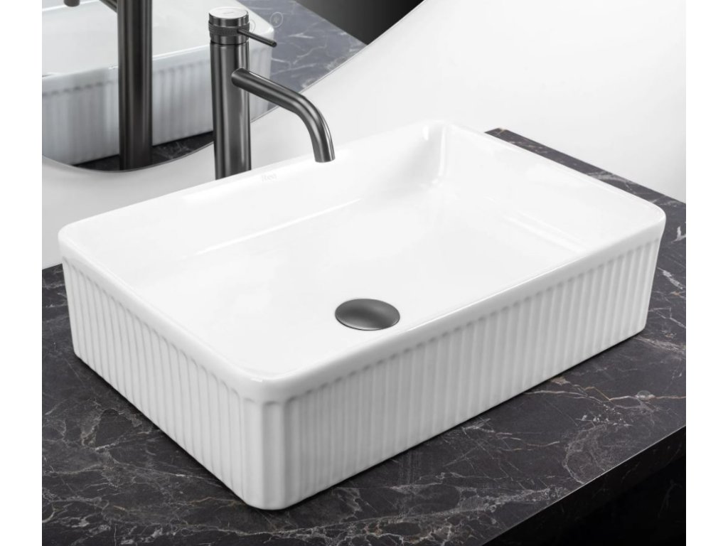 Predstavujeme vám umývadlo na dosku, ktoré dodá vašej kúpeľni moderný vzhľad a vysokú funkčnosť. Umývadlo je vyrobené z kvalitnej sanitárnej keramiky. Vonkajší povrch je vrúbkovaný, čo vytvára zaujímavý vizuálny efekt dodávajúci vašej kúpeľni jedinečný charakter.