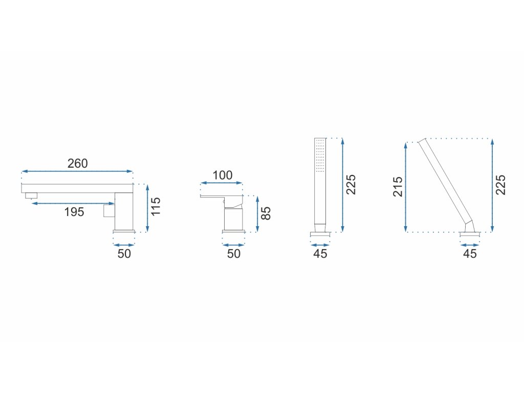 - ručná sprcha, napúšťacia tryska a kohútik na teplú/studenú vodu