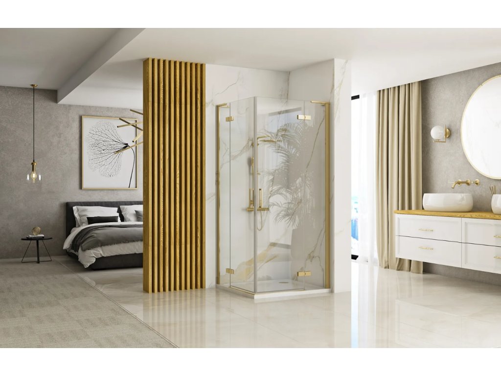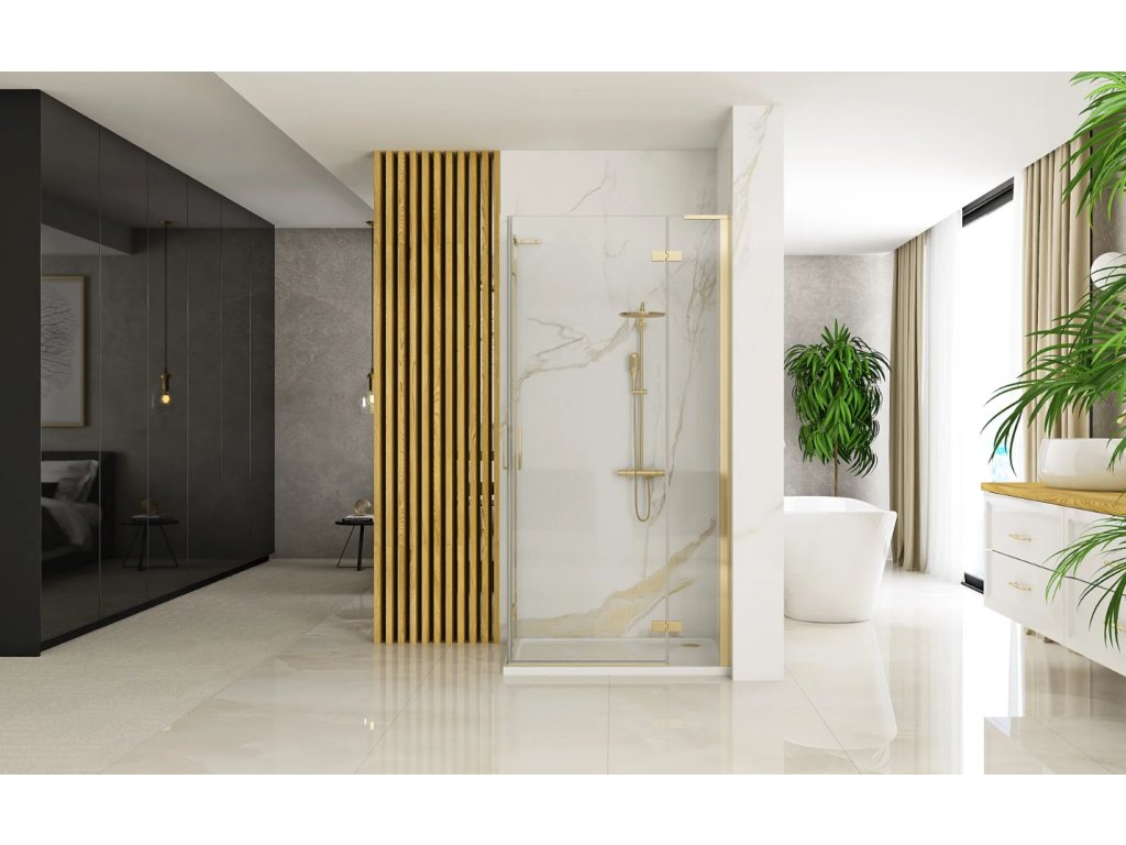 • dizajnový sprchový kút so zlatými profilmi