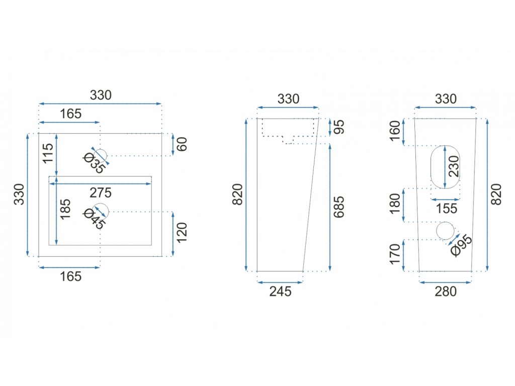 - všetky technické špecifikácie nájdete na výkrese umývadla