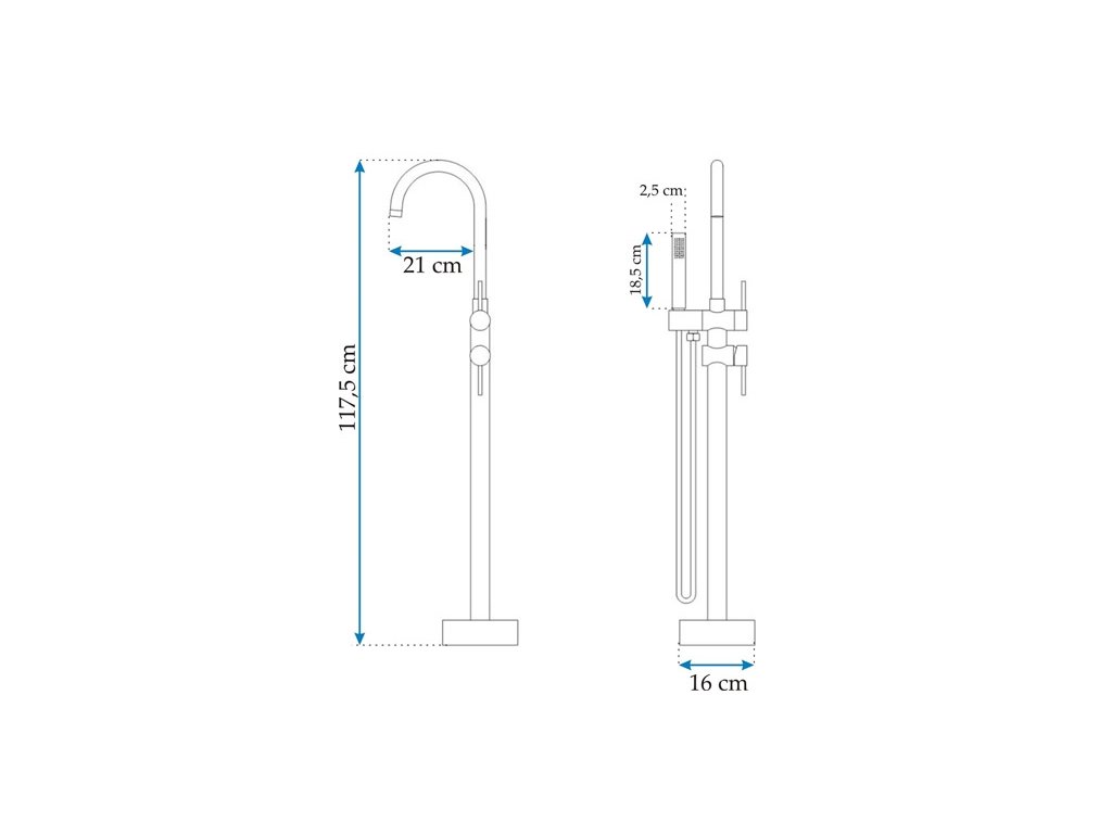 Voľne stojace batérie sú modernou a elegantnou možnosťou umiestnenia batérie v každej kúpeľni. Ideálne pre väčšie kúpeľne. V kombinácii s krásnou voľne stojacou vaňou vytvára výnimočný dizajnový efekt. Keramická hlava zaručuje dlhú životnosť. Táto voľne stojaca batéria dokonale vyplní priestor v kúpeľni. Výrobok bol vyrobený z mosadze pokrytej chrómom. Batéria je veľmi odolná a ľahko sa čistí.