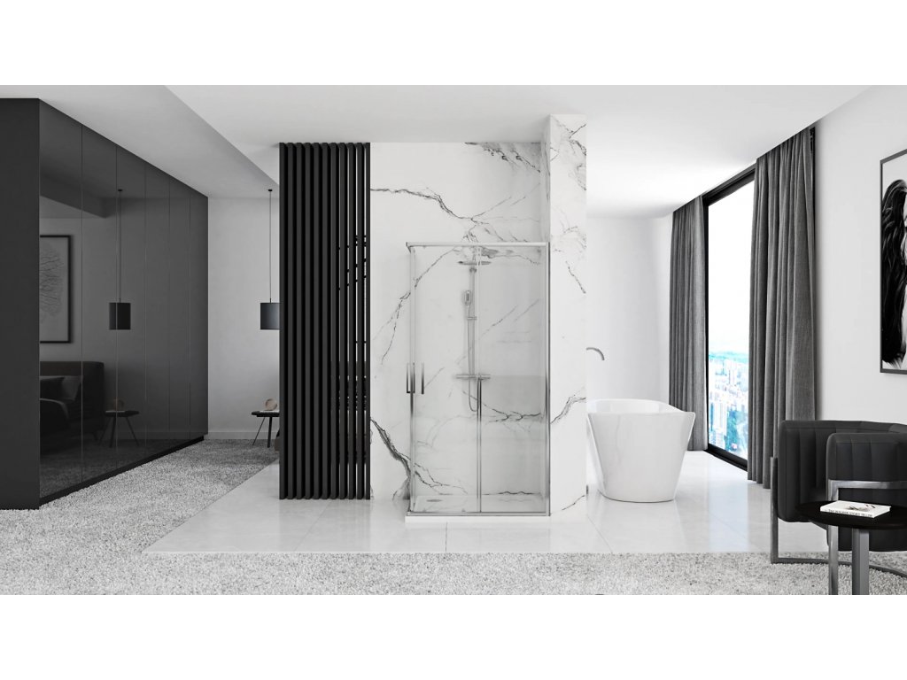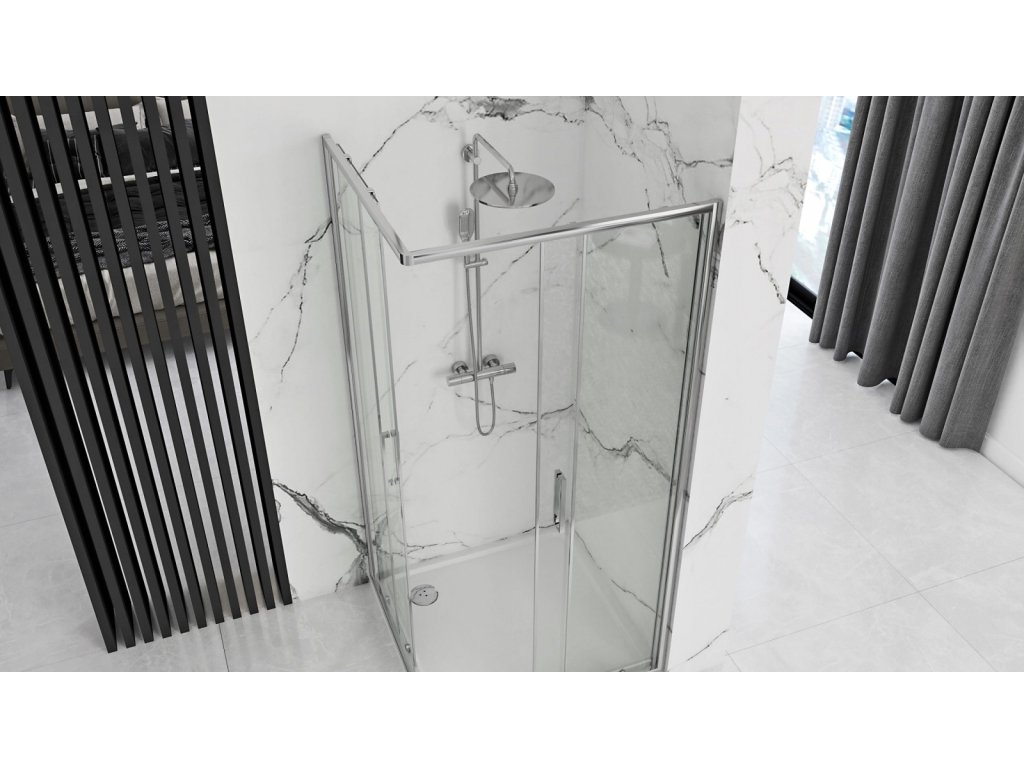 - dizajnový sprchový kút s chrómovými profilmi