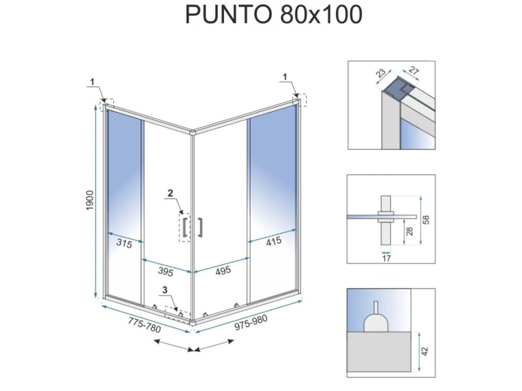 Špecifikácie sprchového kúta Punto