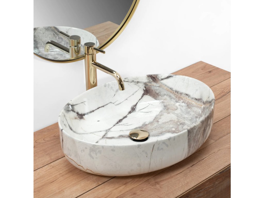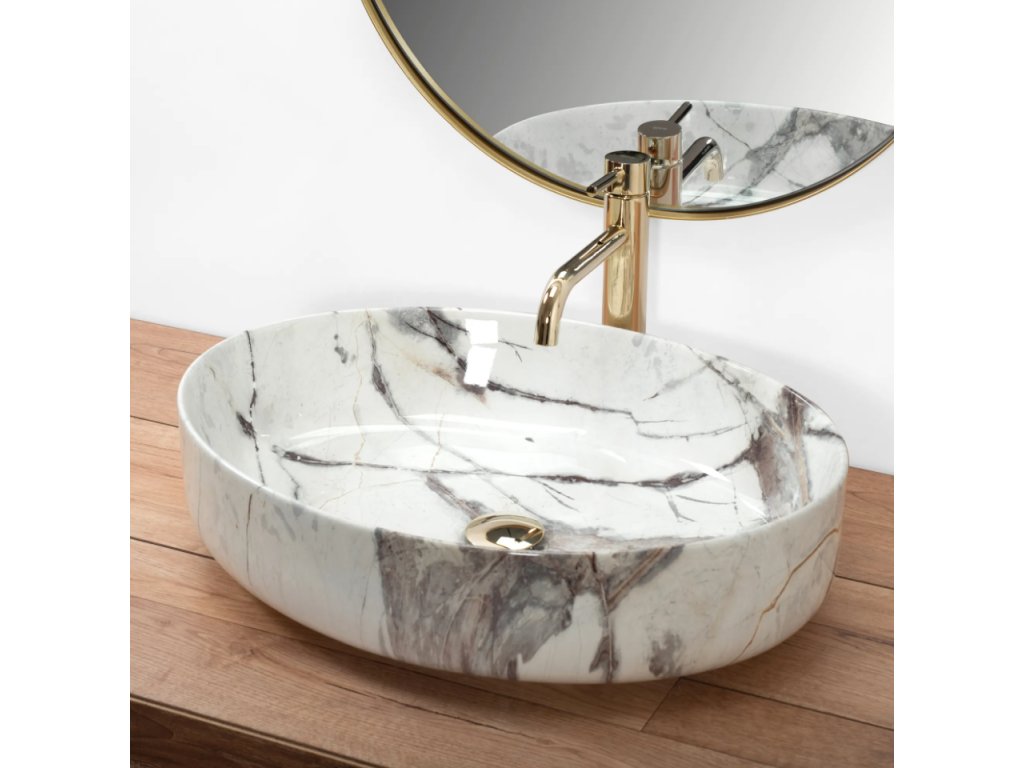 Predstavujeme vám moderné, jedinečné umývadlo v lesklom kamennom prevedení a neobvyklom tvare. Umývadlo vnesie eleganciu do vašej kúpeľne, kde sa môže stať decentným, ale neprehliadnuteľným doplnkom. Zameraním sa na nádheru tejto ušľachtilej farby výsledný efekt určite nadobudne ľahkosť a originalitu. Je vyrobené z vysokokvalitnej sanitárnej keramiky. Umývadlo je odolné voči znečisteniu, vďaka čomu je jeho údržba jednoduchá.