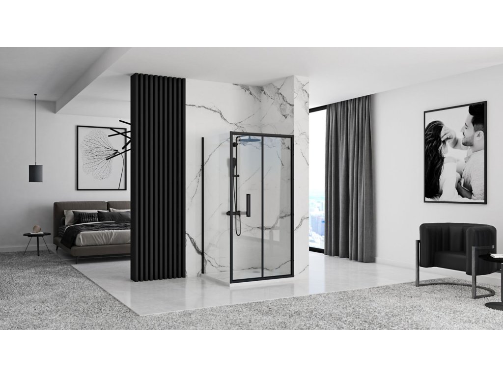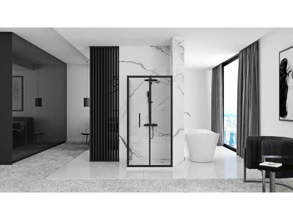 Sprchové dvere, ktoré boli vyrobené z najkvalitnejších materiálov. Zaručujú príjemný prechod do sprchovacieho priestoru. Čierna farba je hlavným lídrom na trhu kúpeľňových interiérov, vďaka čomu sú tieto dvere Rapid veľmi nadčasovou a modernou záležitosťou. Čierne matné profily sú odolné voči nečistotám a škvrnám a ľahko sa čistia. Kombinácia čiernych profilov a čiernych úchytiek spolu s priehľadným sklom dokonale ladí s modernou trendovou kúpeľňou.