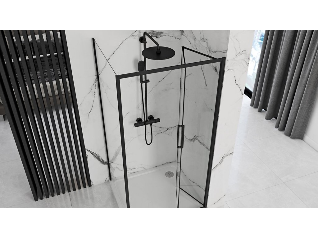 Sprchové dvere, ktoré boli vyrobené z najkvalitnejších materiálov. Zaručujú príjemný prechod do sprchovacieho priestoru. Čierna farba je hlavným lídrom na trhu kúpeľňových interiérov, vďaka čomu sú tieto dvere Rapid veľmi nadčasovou a modernou záležitosťou. Čierne matné profily sú odolné voči nečistotám a škvrnám a ľahko sa čistia. Kombinácia čiernych profilov a čiernych úchytiek spolu s priehľadným sklom dokonale ladí s modernou trendovou kúpeľňou.