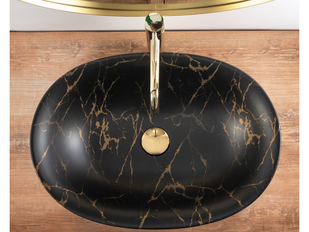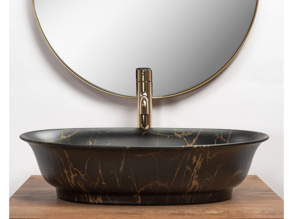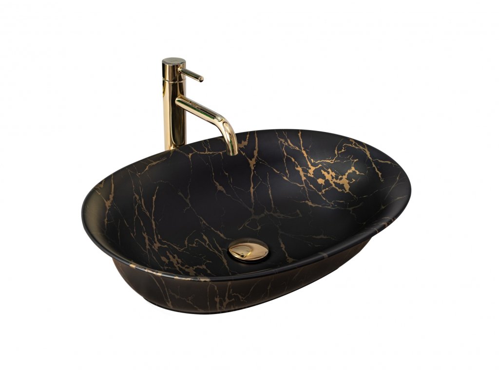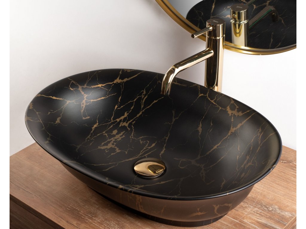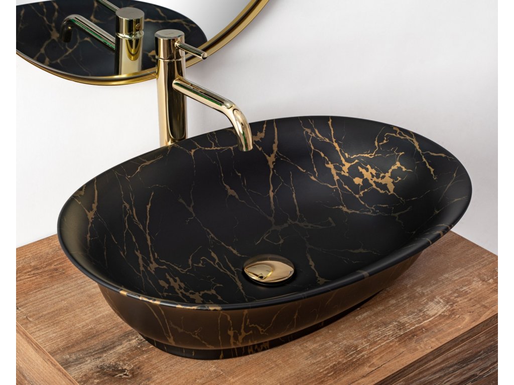 Roma je veľmi dizajnové a luxusné umývadlo. Zlatá farba v podobe ozdobných detailov oslní každého. Toto umývadlo vnesie luxus do každej kúpeľne a vy sa budete cítiť úplne úžasne. So zlatými alebo čiernymi doplnkami z našej ponuky si môžete vytvoriť krásnu modernú kúpeľňu.