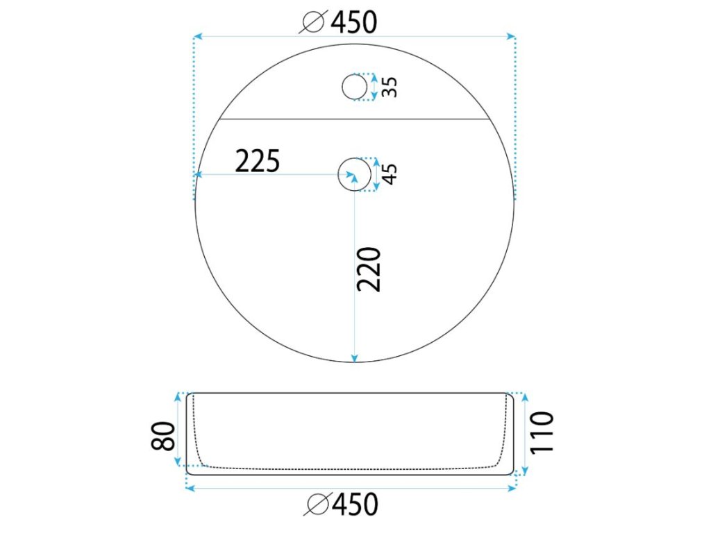 Rea Ronda 45 umývadlo na dosku, biele, REA-U6622