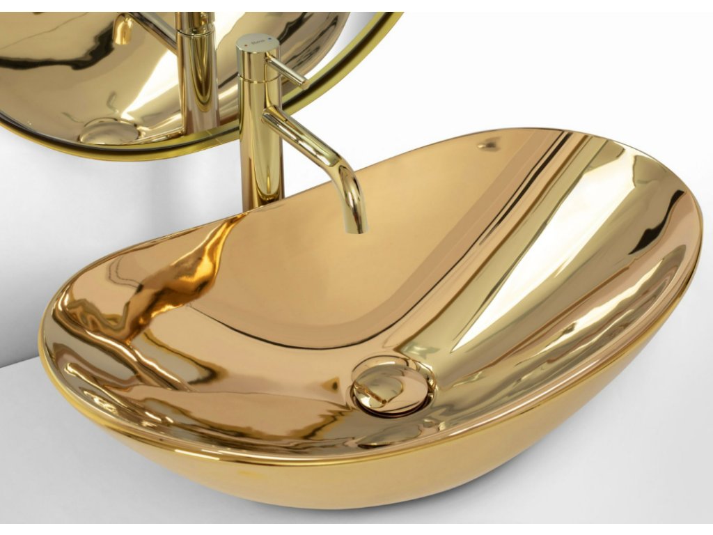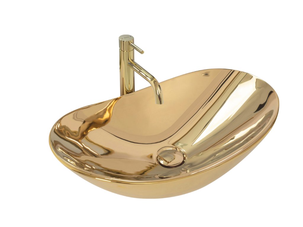 Royal Gold je veľmi dizajnové a luxusné umývadlo. Zlatá farba vo vysokom lesku oslní každého. Toto umývadlo vnesie luxus do každej kúpeľne a vy sa budete cítiť úplne úžasne. So zlatými alebo čiernymi doplnkami z našej ponuky si môžete vytvoriť krásnu modernú kúpeľňu.