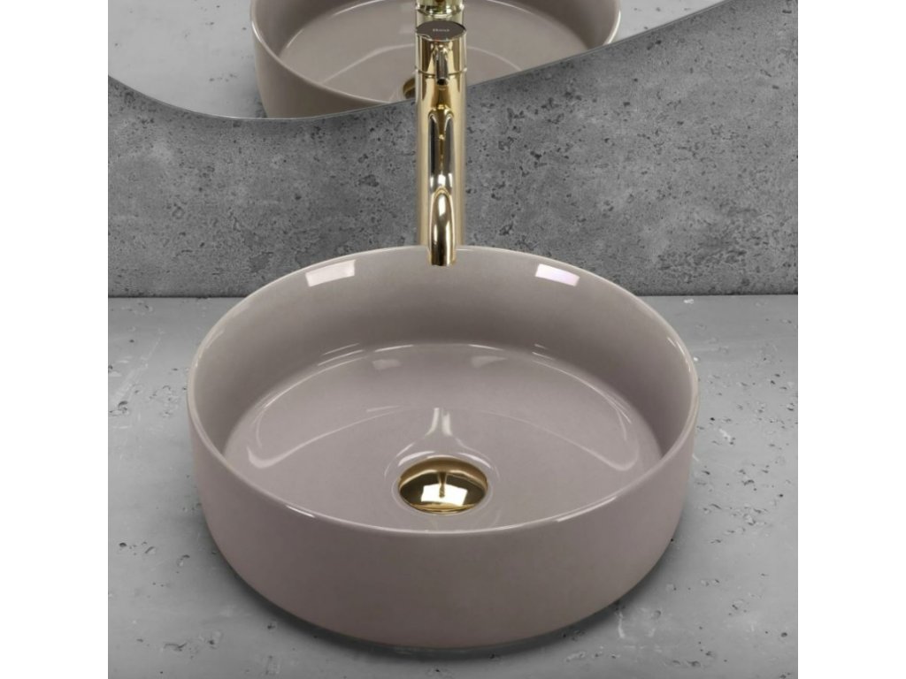 Veľmi moderné a dizajnové umývadlo na dosku Sami v lesklej béžovej farbe. Umývadlo je vyrobené z kvalitnej sanitárnej keramiky. Vďaka špeciálnej povrchovej úprave sa veľmi ľahko čistí a jeho údržba sa stáva jednoduchou.