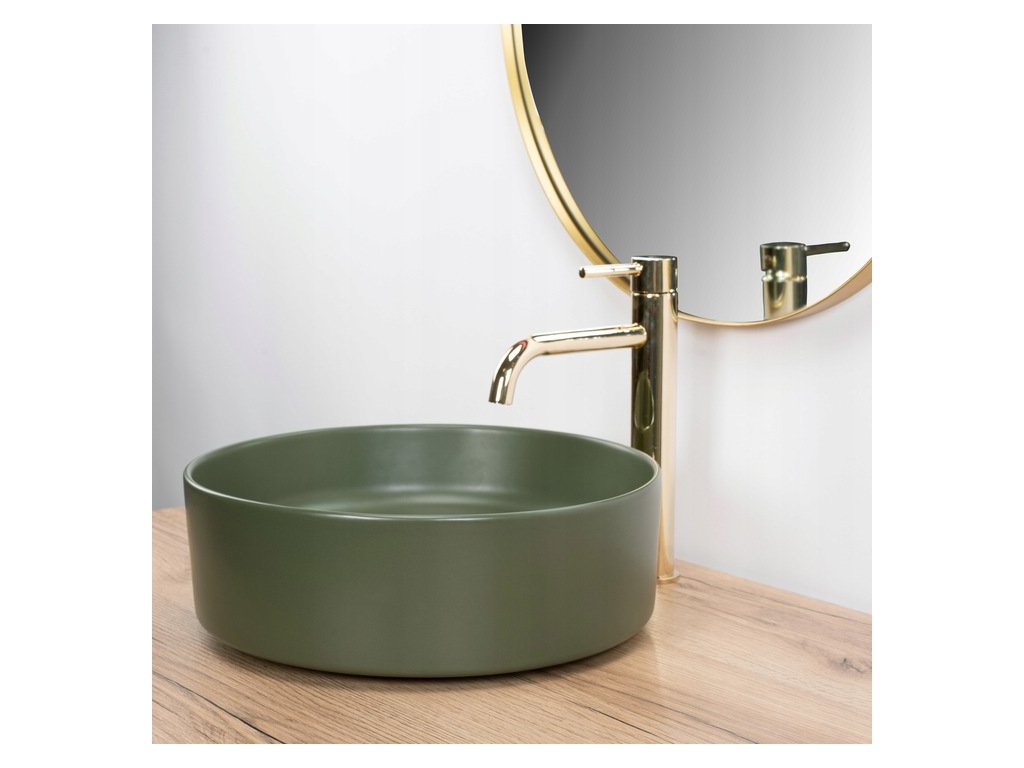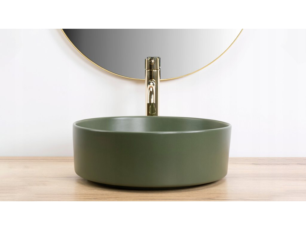 Veľmi moderné a dizajnové umývadlo na dosku Sami v zelenej matnej farbe. Umývadlo je vyrobené z kvalitnej sanitárnej keramiky. Vďaka špeciálnej povrchovej úprave sa veľmi ľahko čistí a jeho údržba sa stáva jednoduchou.