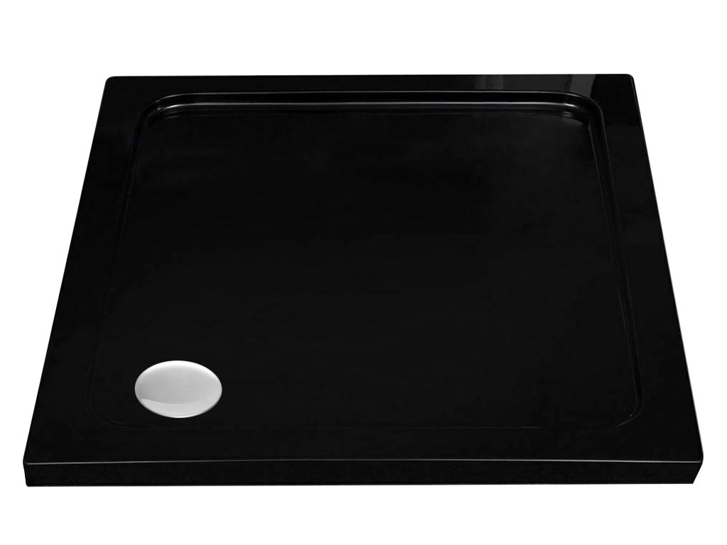 Praktická a kvalitná štvorcová sprchová vanička v čiernej farbe, vyrobená z kvalitného sanitárneho akrylátu.