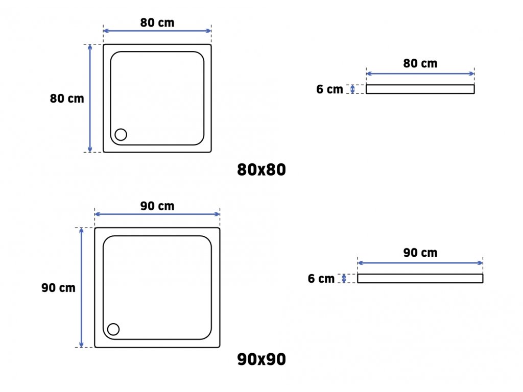 Tabuľka rozmerov sprchovej vaničky Savoy