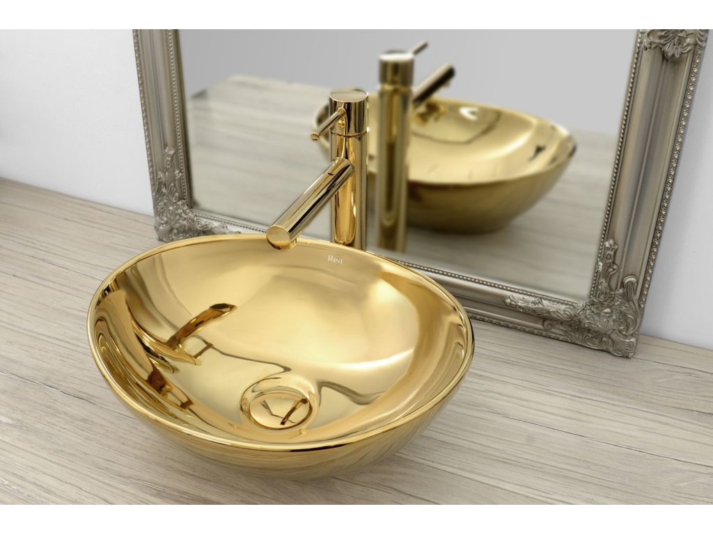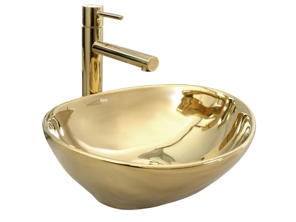 Sofia Gold je veľmi dizajnové a luxusné umývadlo. Zlatá farba vo vysokom lesku oslní každého. Toto umývadlo vnesie luxus do každej kúpeľne a vy sa budete cítiť úplne úžasne. Vytvorte si krásnu modernú kúpeľňu so zlatými alebo čiernymi doplnkami z nášho radu Gold and Black Edition.