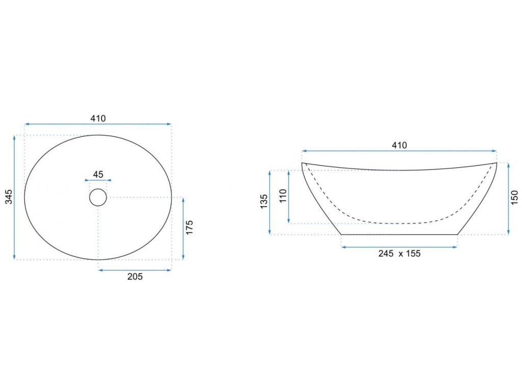 Tvar umývadla: oválny