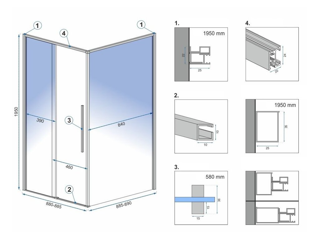 Špecifikácie solárneho sprchového kúta 90x90x195