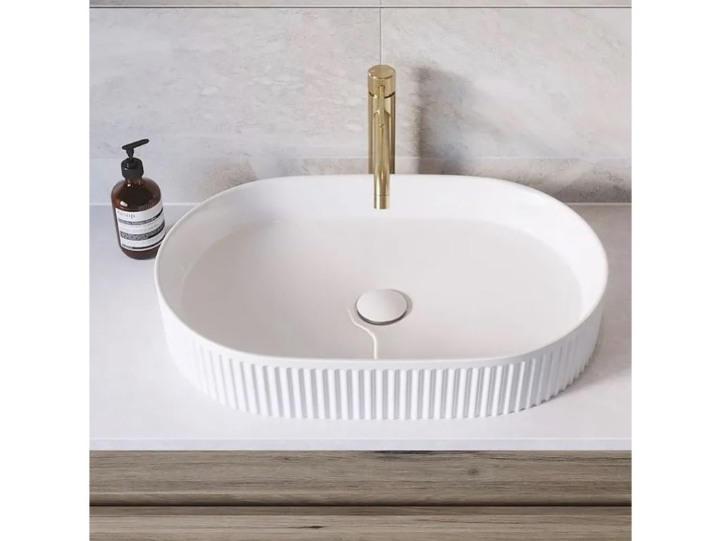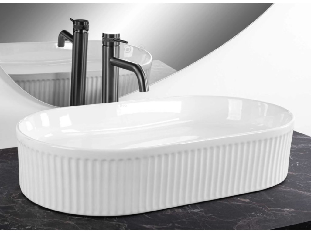 Predstavujeme vám umývadlo na dosku, ktoré dodá vašej kúpeľni moderný vzhľad a vysokú funkčnosť. Umývadlo je vyrobené z kvalitnej sanitárnej keramiky. Vonkajší povrch je vrúbkovaný, čo vytvára zaujímavý vizuálny efekt dodávajúci vašej kúpeľni jedinečný charakter.