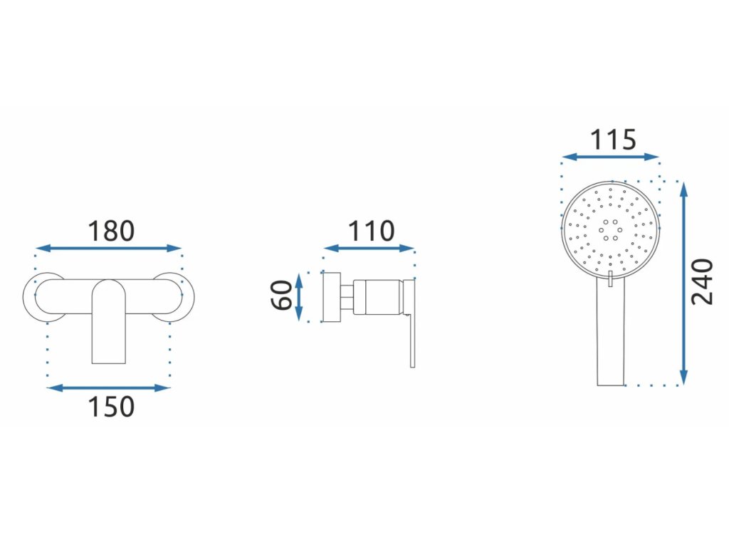 • dizajnová sprchová súprava (batéria, ručná sprcha, držiak sprchy)