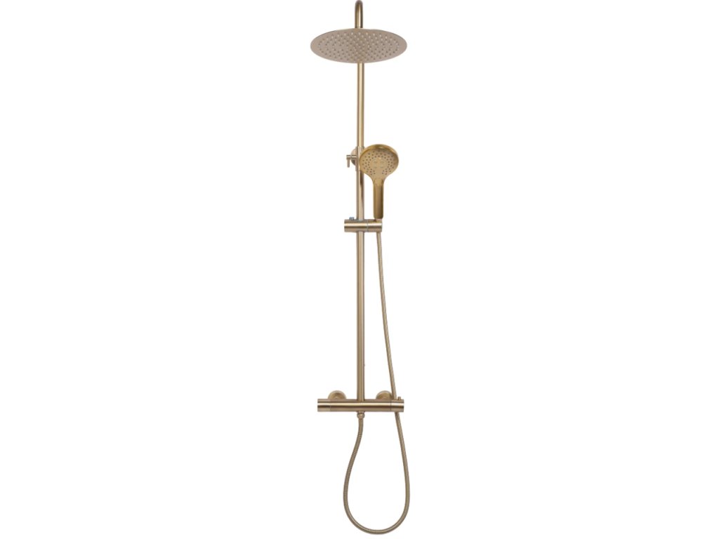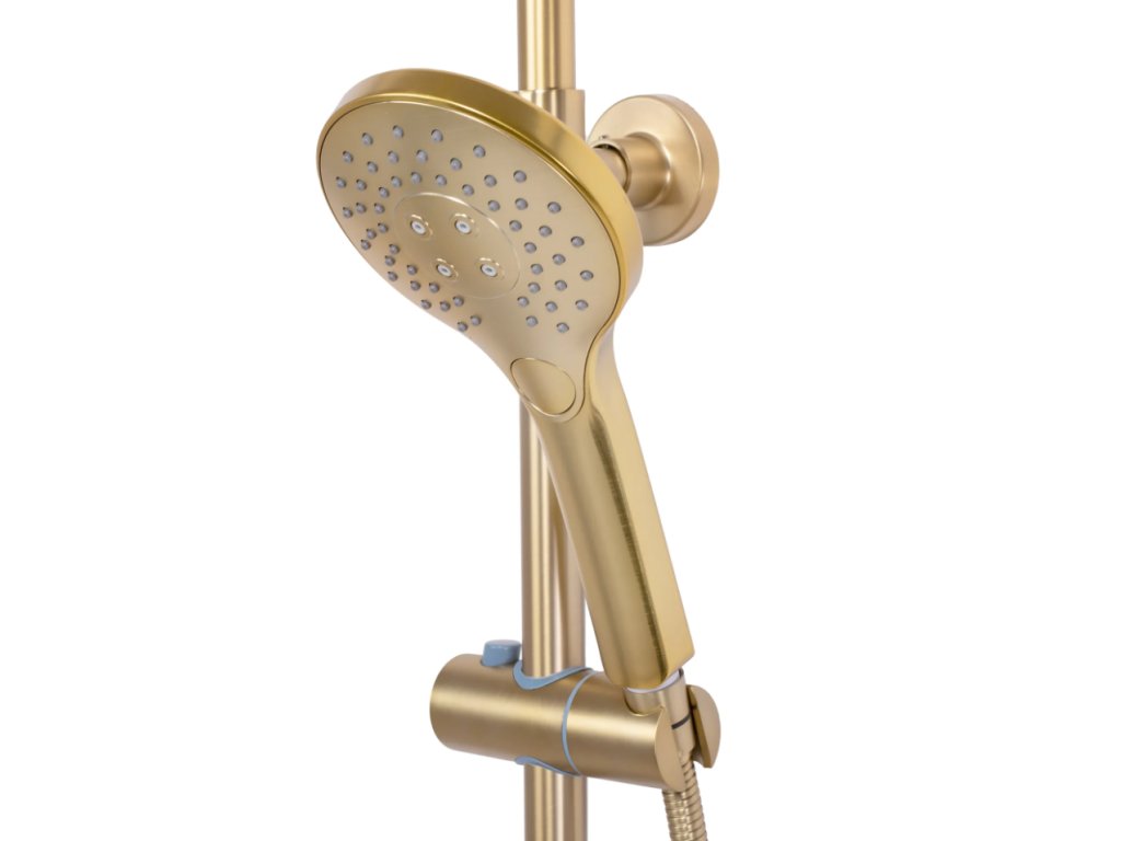 Dizajnová termostatická sprchová súprava zo série Gold Edition v povrchovej úprave brúsené zlato. Pri výrobe týchto súprav sa používajú najlepšie technológie, aby každý zažil maximálne pohodlie pri každodennom sprchovaní. Vysokokvalitné materiály zaručujú odolnosť a spoľahlivosť na dlhé roky.