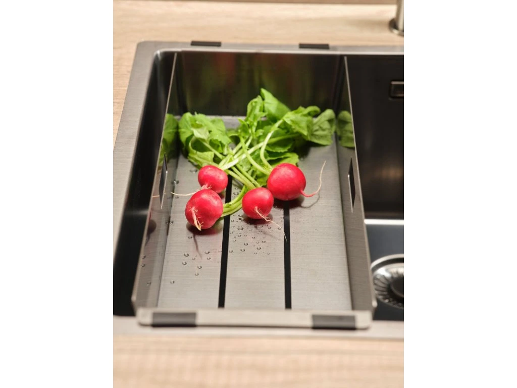 Odtokový rošt pre drez Reginox Miami 50x40 Gun metal (R30547). Veľmi praktická miska do drezu určená napríklad na drobný riad alebo príbory.