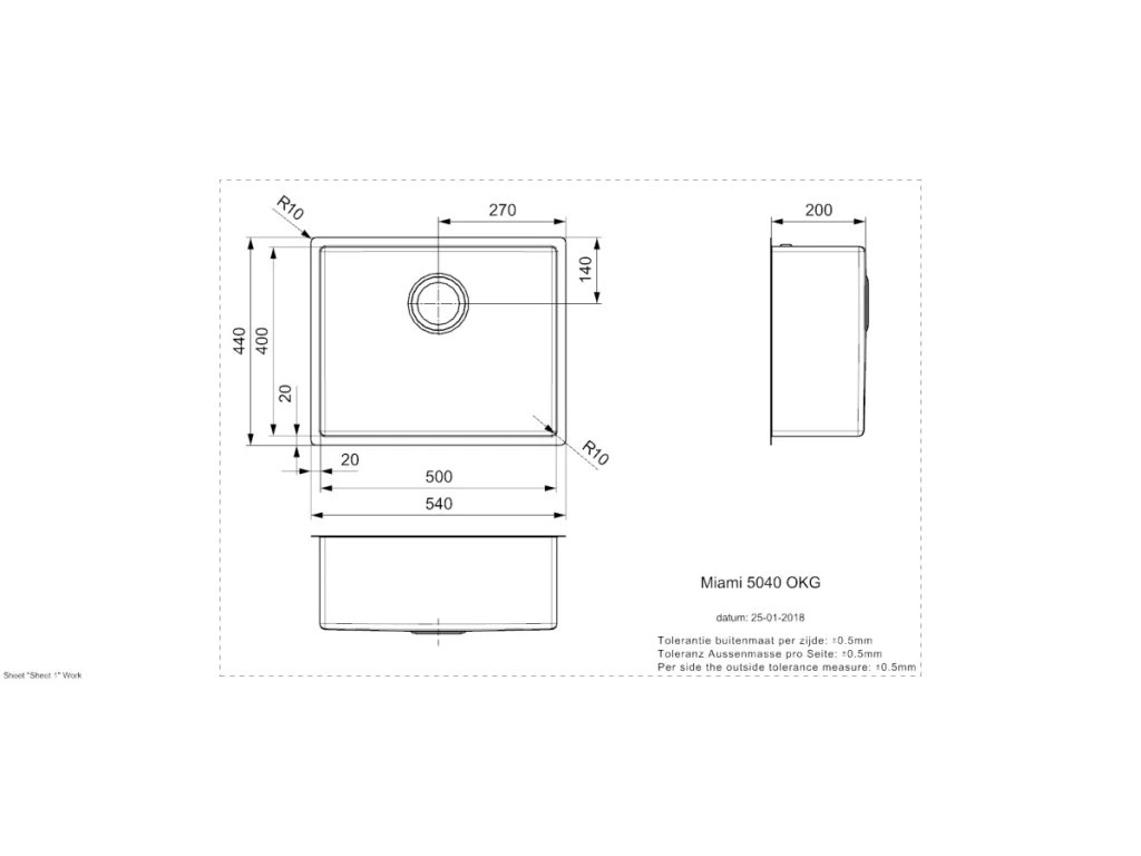 Umývadlo drezu Miami 500 je dostatočne hlboké (20 cm) na pohodlné umývanie aj objemného riadu, ako sú hrnce a plechy na pečenie.