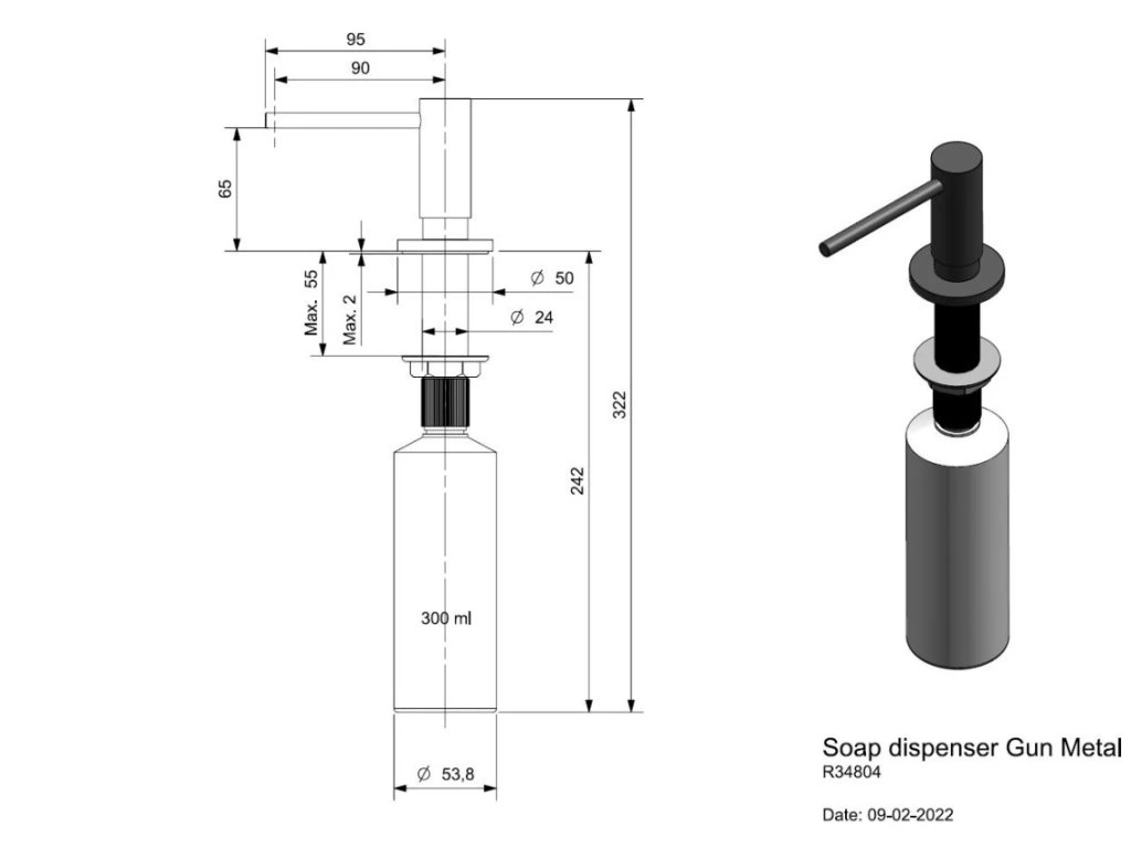 Dávkovač saponátu Reginox Gun metal (R34804 ) je určený na inštaláciu pod omietku. Dávkovače pod omietku fungujú ako neviditeľná nádržka na saponát. Dávkovač je vždy skrytý pod úrovňou pracovnej dosky a nezaberá veľa potrebného miesta na pracovnej ploche.