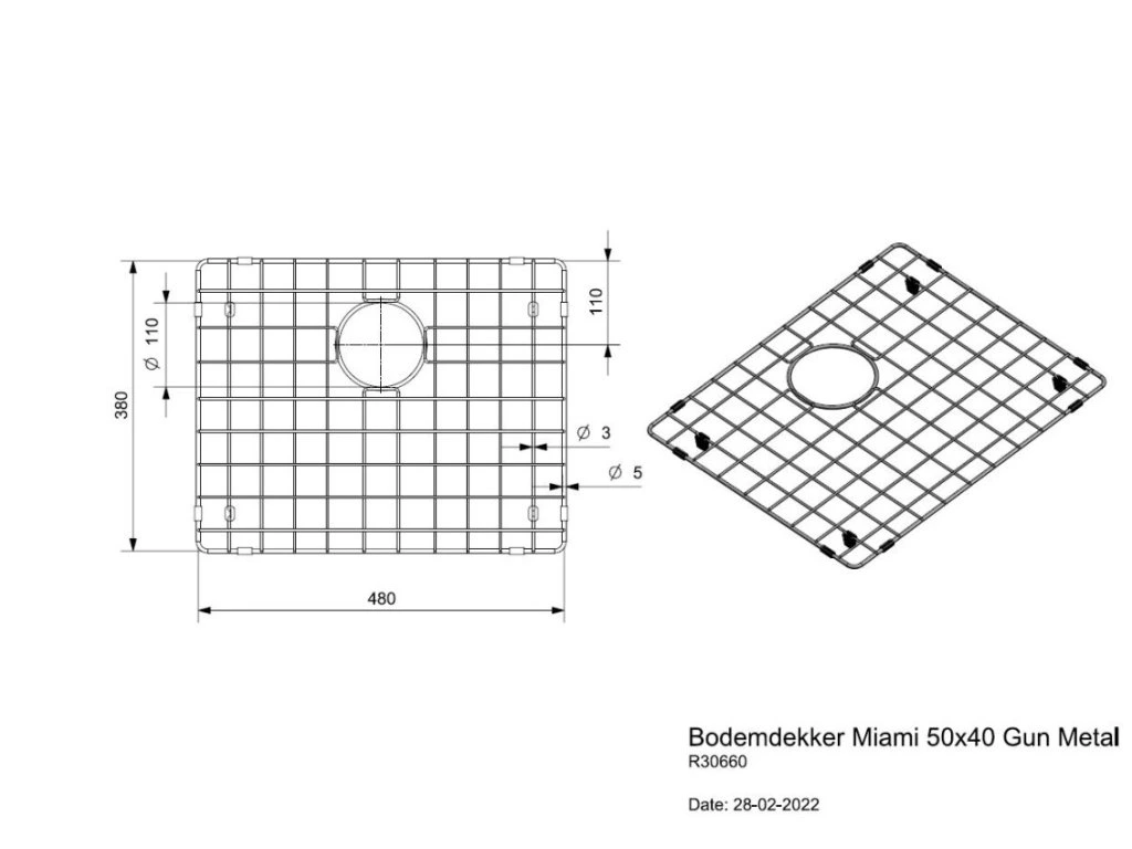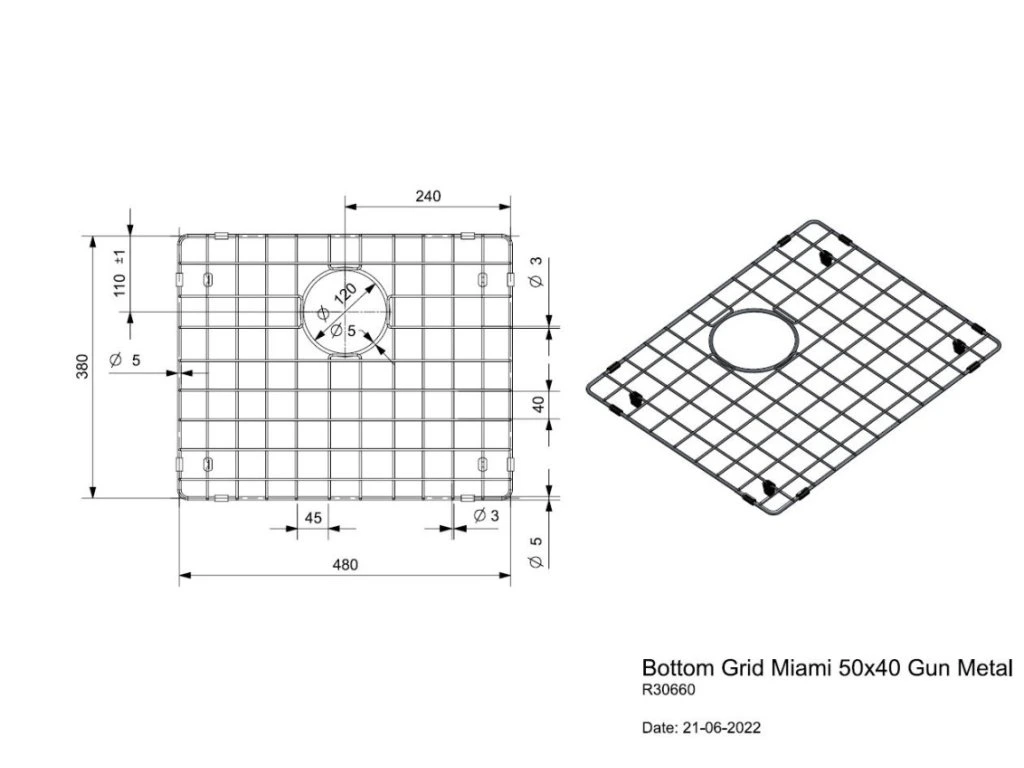 Umyvadlový rošt Reginox Miami 50x40 Gun metal (R30660). Mriežka chráni umývadlo pred opotrebovaním. Pri používaní drezu nie je potrebné mriežku odstraňovať, voda krásne odteká do odpadu. Gumové nožičky a vonkajší okraj mriežky zaisťujú pevné uchytenie na podstavci drezu a chránia drez.