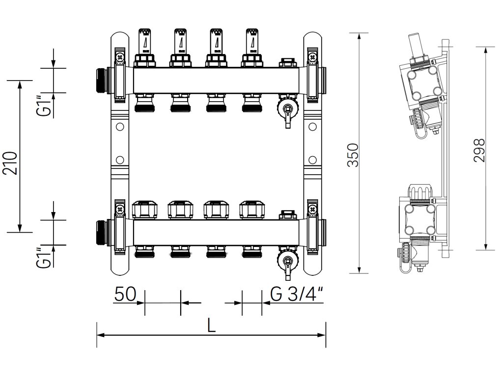 Fotografie a obrázky slúžia len na ilustračné účely. Skutočná veľkosť rozdeľovača závisí od počtu vykurovacích okruhov.