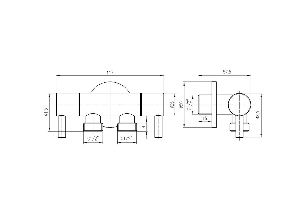 Rohový ventil dvojitý s keramickými vrchnákmi 1/2" x 2 x 1/2" , chróm RV0222, RAV Slezák RV0222