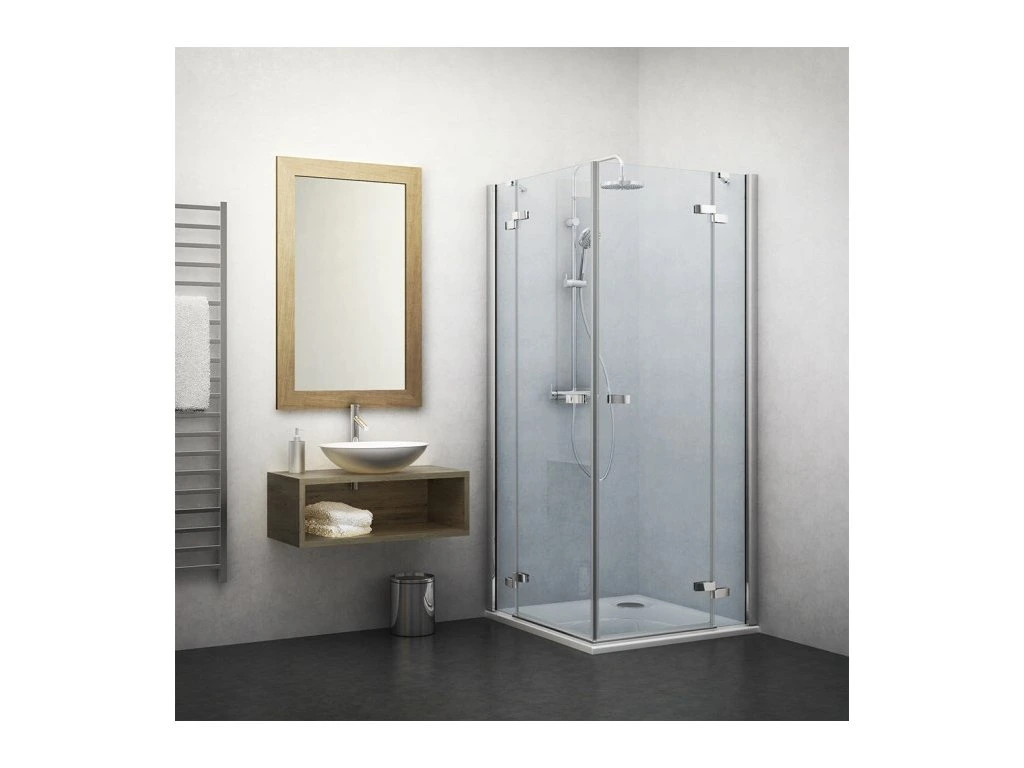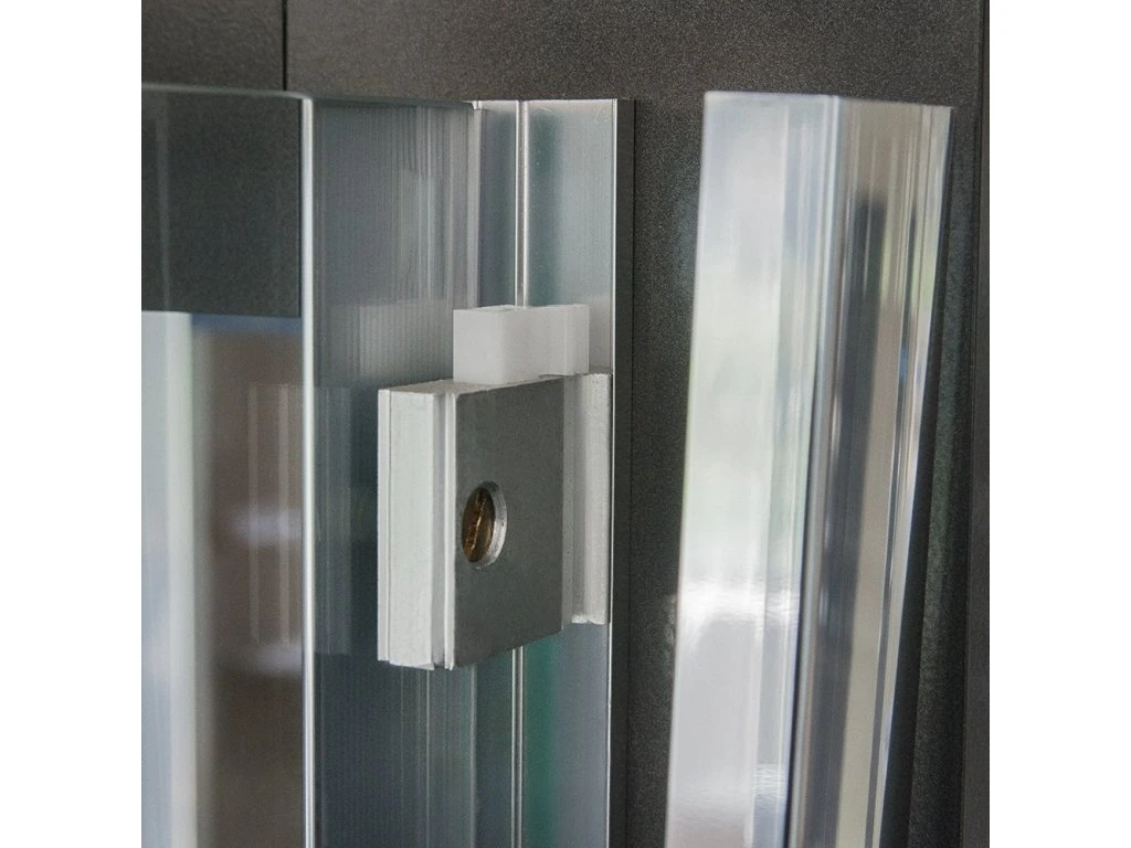 Bezrámový sprchový kút s dvojitými dverami vyniká precíznym spracovanímspracovaním, použitými materiálmi a v neposlednom rade jednoduchým, elegantným dizajnom. Bezpečnostné sklo s hrúbkou 6 mm (sklo dverí) a bezpečnostné sklo s hrúbkou 8 mm (pevná strana ) sú uložené v mosadznom pochrómovanomzávesoch s trojfázovým zdvíhacím mechanizmom, ktorý umožňuje zaistenie dverí v otvorenej, zatvorenej a mikroventilačnej polohe.