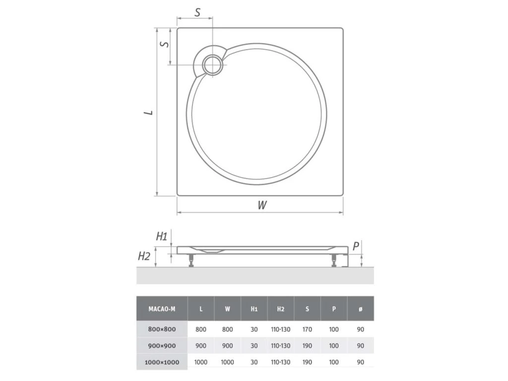 Táto nízka sprchová vanička je ideálna do moderných kúpeľní. Decentný a čistý dizajn sa dokonale hodí do každej sprchy. Je vyrobená z liateho mramoru, vďaka čomu je veľmi odolná a príjemná na dotyk. Má protišmykovú úpravu pre bezpečnosť pri sprchovaní. Vyberte si z niekoľkých veľkostí sprchovej vaničky MACAO-M.