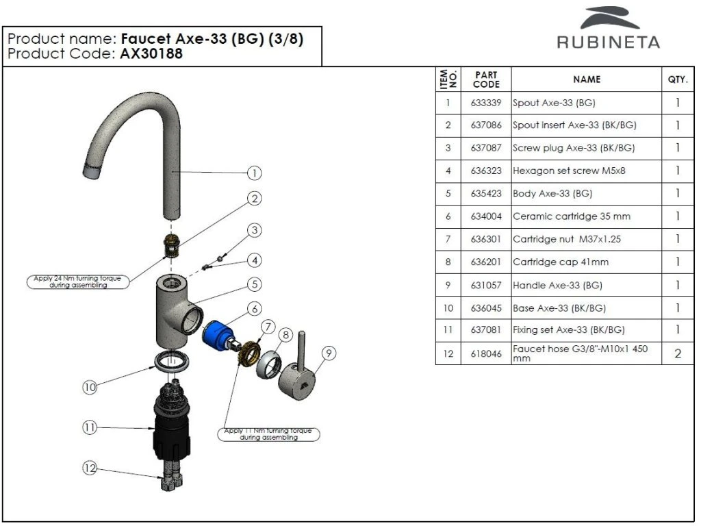 - V tejto batérii je použitý perlátor Rubineta Spider - špeciálne mikrotechnológie znižujú hladinu hluku, tvoria dokonalý prúd vody, šetria vodu.