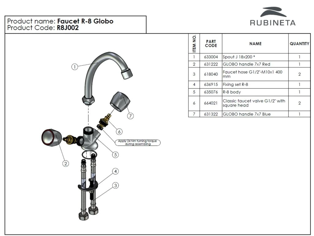 Odlievané telo týchto vodovodných batérií je vyrobené zo špeciálne upravenej nehrdzavejúcej mosadznej zliatiny RubiBrass . Je odolná a bezpečná pre ľudské zdravie a životné prostredie. RubiBrass má menej olova a ďalších nepotrebných zlúčenín, ktoré môžu reagovať s pitnou vodou.