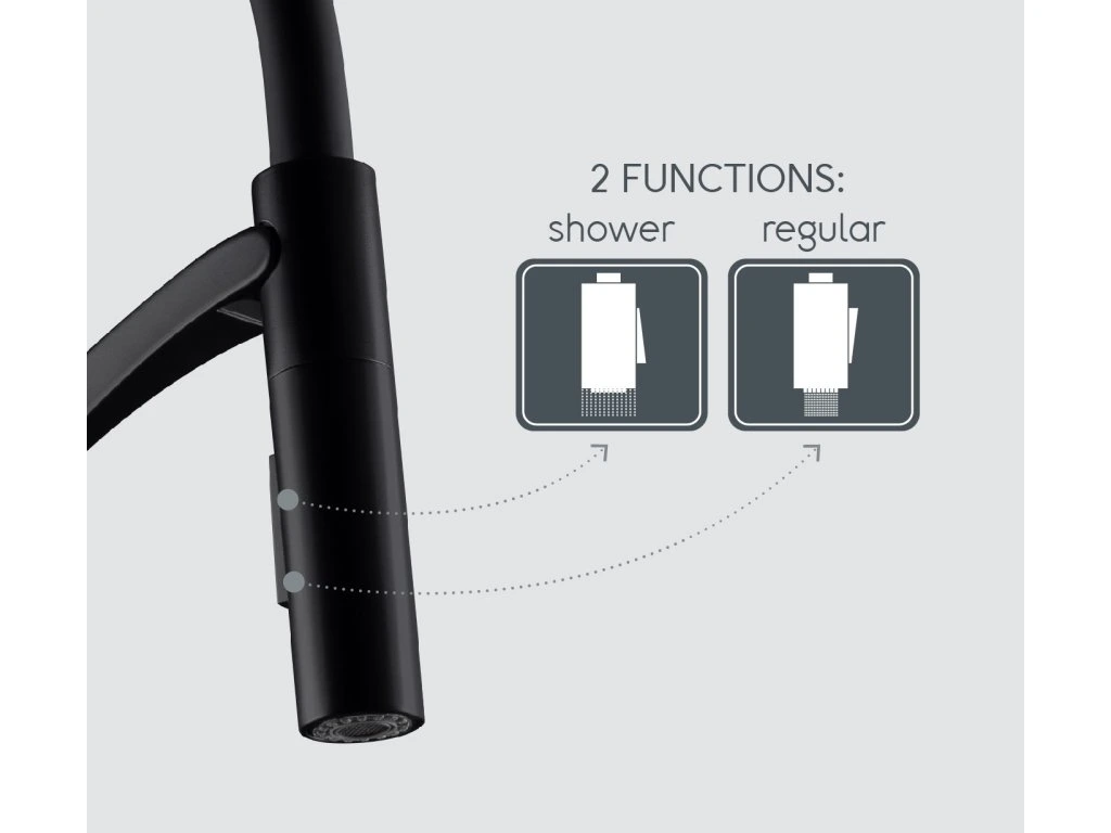 - Flexibilné masívne rameno so spŕškou v čiernej farbe, uchytávanie spŕšky pomocou magnetu