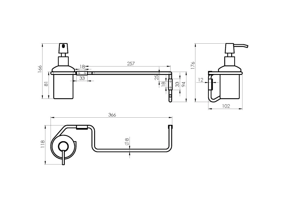 Séria MINI v modernej čiernej farbe je tvorená dávkovačom mydla, WC štetkou , háčikom , držiakom toaletného papiera a držiakom na uteráky.