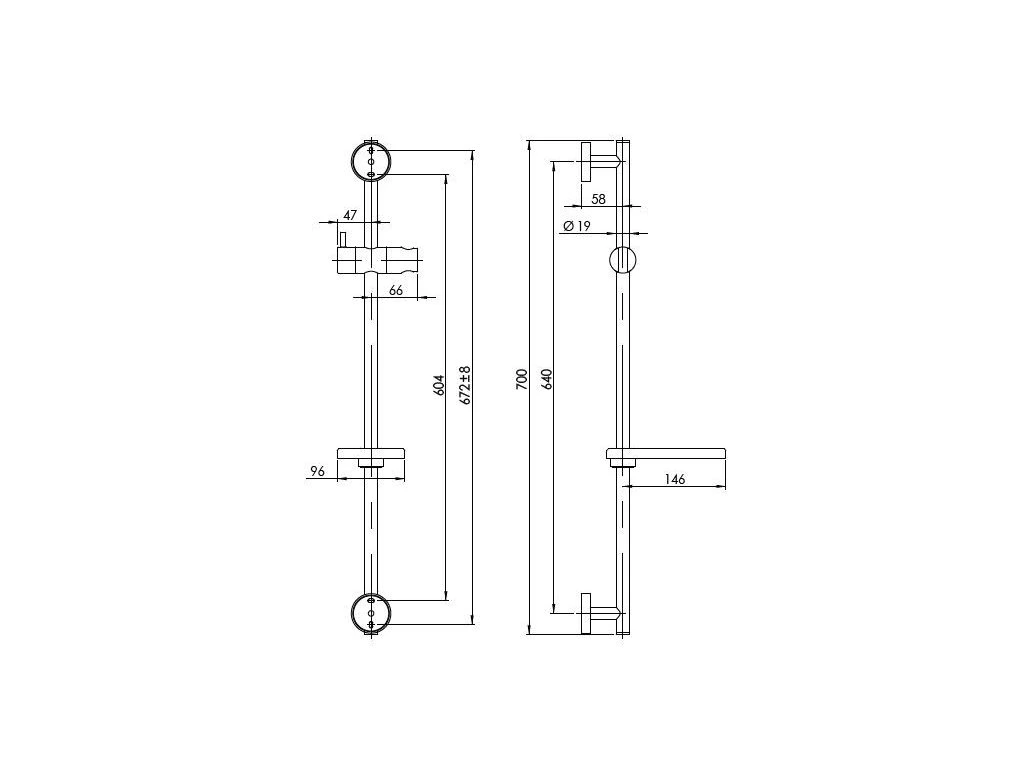 - Obsah setu: nerezová pochrómovaná vodiaca tyč, úchyty na stenu, nastaviteľný držiak ručnej sprchy, plastová polička