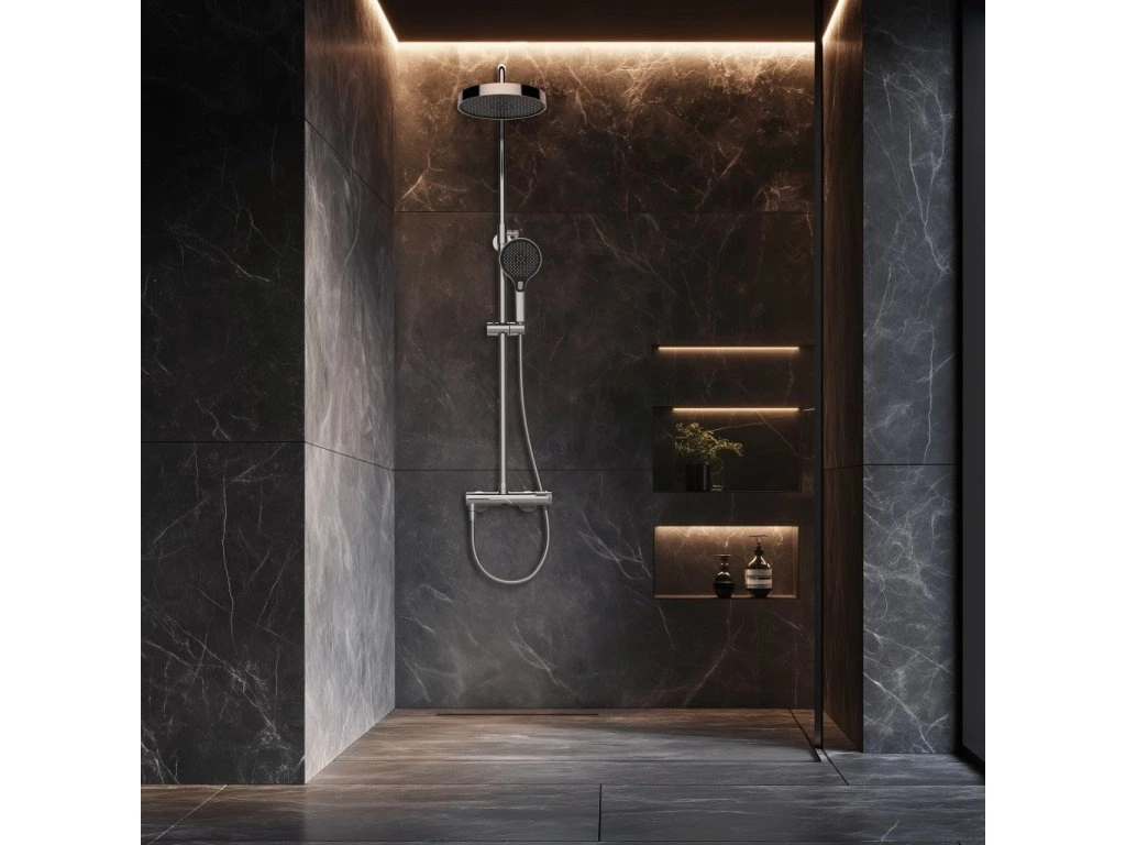Rubineta Sprchový termostatický nástenný set COSY-10 + STĹP RAINFALL, chróm OLBACOS10RAIN