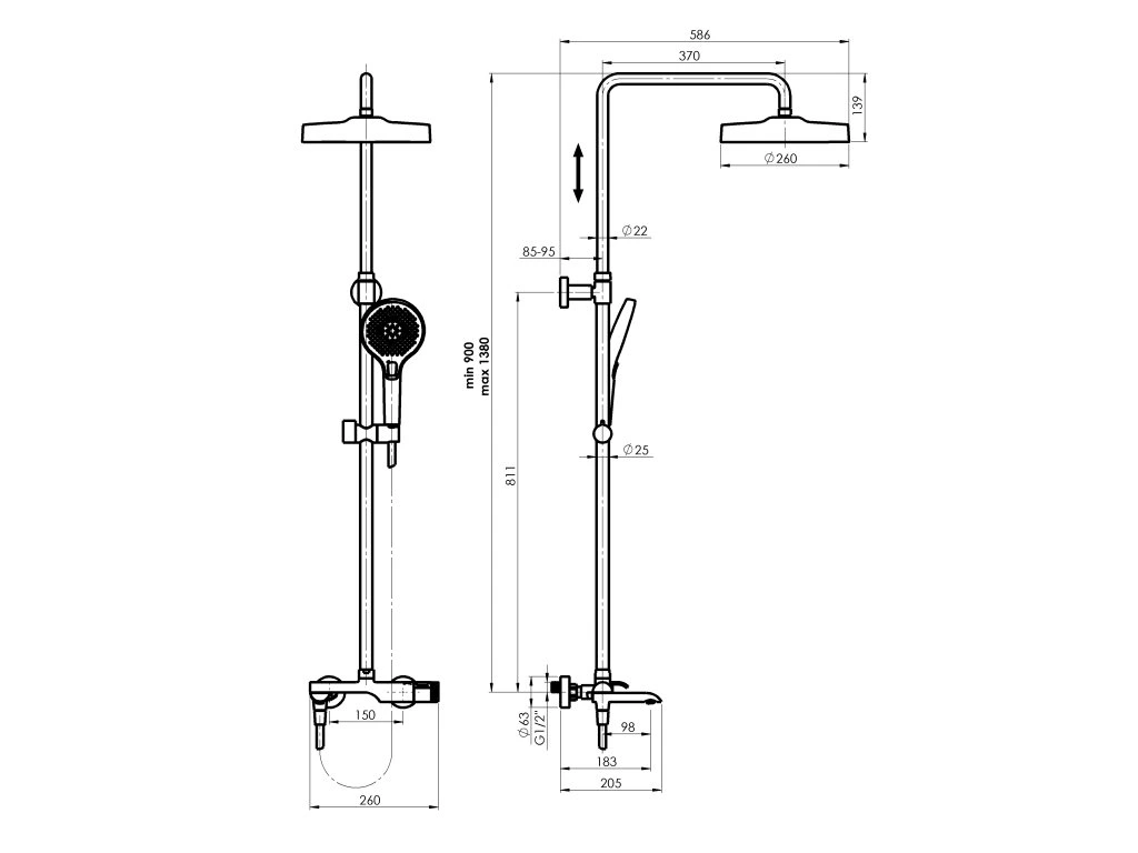 - Regulovateľná výška hlavovej sprchy 930 - 1415 mm