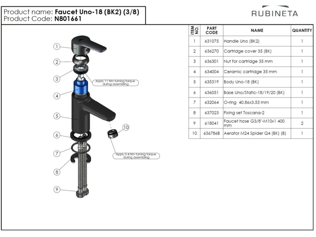 Rubineta Umývadlová batéria UNO-18 NEW Čierna OLBAUN18BNEW