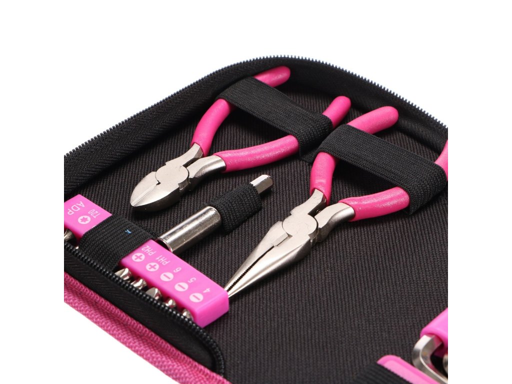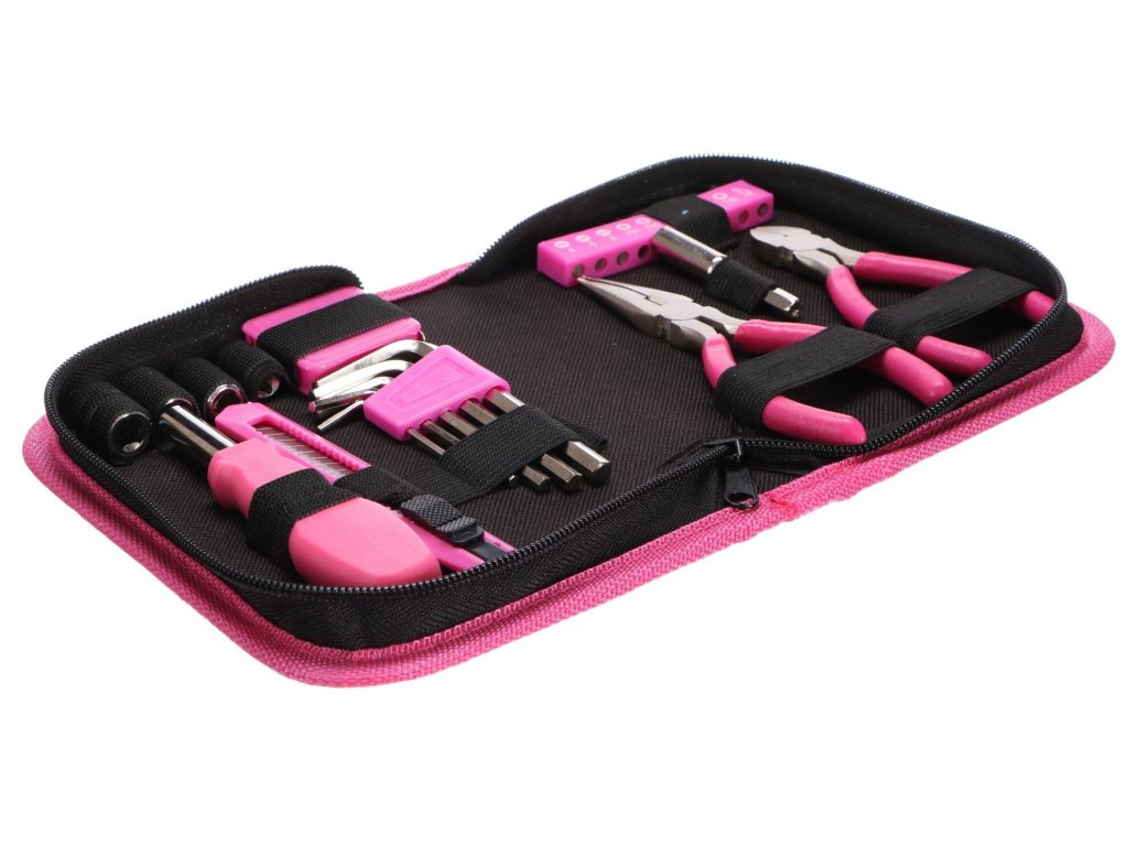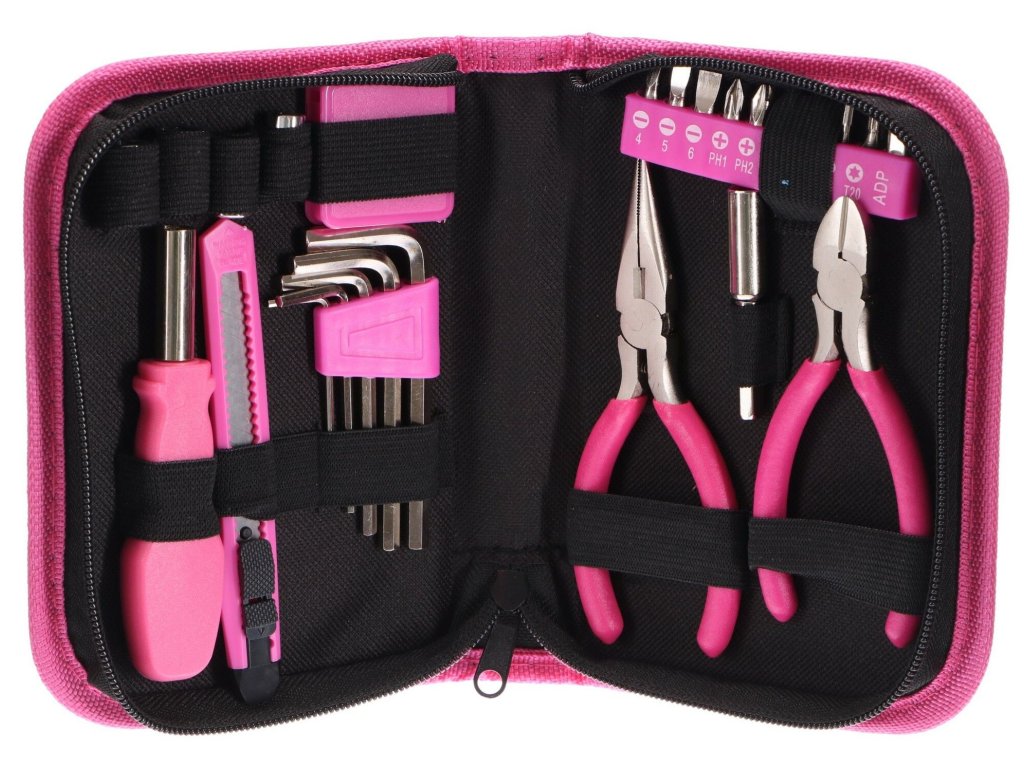 Sada náradia Sixtol HOME PINK 26 osloví každú praktickú ženu alebo kutila, ktorý má rád ružovú farbu. Môžete s ňou vykonávať drobné opravy v domácnosti. V štýlovom kufríku na zips nájdete celkom 26 kusov náradia. Môžete ich použiť doma aj v dielni.