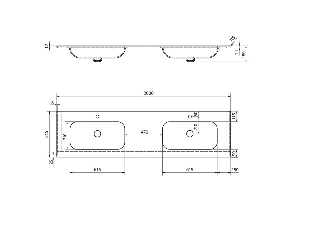 Sapho ARUBA dvojumývadlo, 200x51,5 cm, Rockstone biela matná AR200-B2M