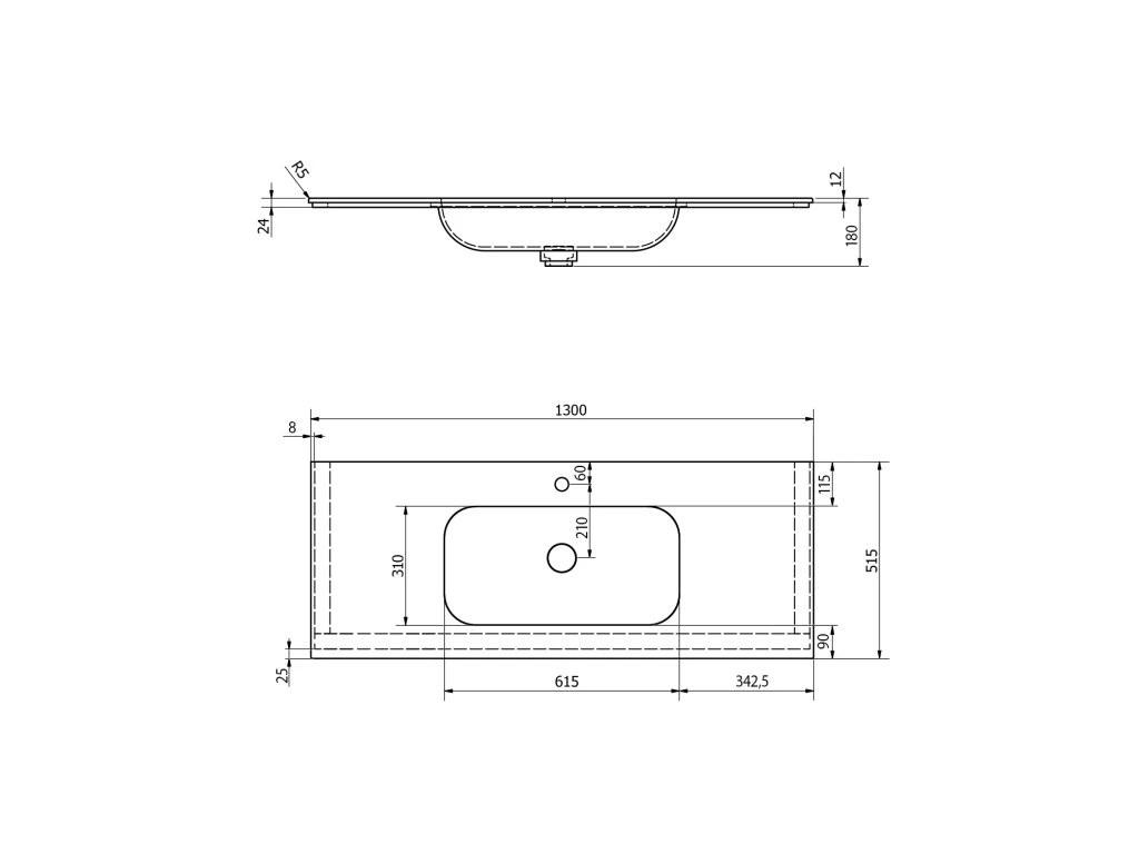 Sapho ARUBA umývadlo, 130x51,5 cm, Rockstone biela matná AR130-B1M