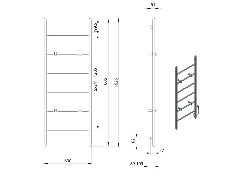Sapho BARBO elektrický sušiak uterákov, hranatý, 600x1600mm, 160 W, čierna mat BB906